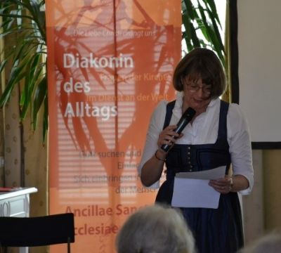 Höhepunkte des Festes waren die Eucharistiefeier mit Weihbischof Wolfgang Bischof und der Vortrag des Münsteraner Kirchenhistorikers Hubert Wolf zum Thema „Von Diakoninnen, Äbtissinnen und Bischöfinnen?“. Prof. Dr. Wolf, der auch die Herausgabe der Münchner Tagebücher von Kardinal Faulhaber leitet, legte die Geschichte der Diakoninnen in der katholischen Kirche dar, die es bis ins Mittelalter hineingegeben habe. „Bei der Gründung der ‚Vereinigung der Diakoninnen‘ gab es einen Kompromiss zwischen Frauenpower einerseits und einem wohlwollend-vorsichtigem Bischof andererseits“, erklärte er.