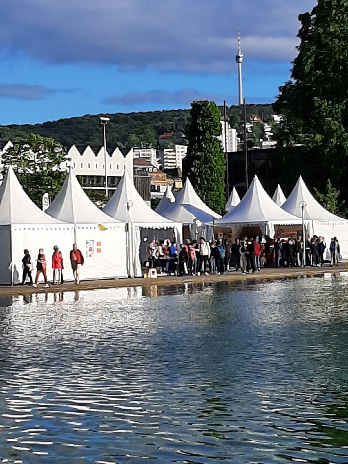 Auch wenn sich die Besucherzahlen im Vergleich zum letzten Katholikentag in Münster verringert hatten, waren die persönlichen Begegnungen davon nicht allzu sehr beeinträchtigt. Vielleicht suchten die Menschen nach den pandemiebedingten kontaktarmen Jahren mehr denn je das persönliche Gespräch. Das schöne Wetter sowie die gelungene Anordnung der einzelnen Stände, die in Form von weißen schmucken Tempelchen die Stuttgarter Innenstadt zierten, trugen viel zu einer heiteren und angenehmen Stimmung bei.