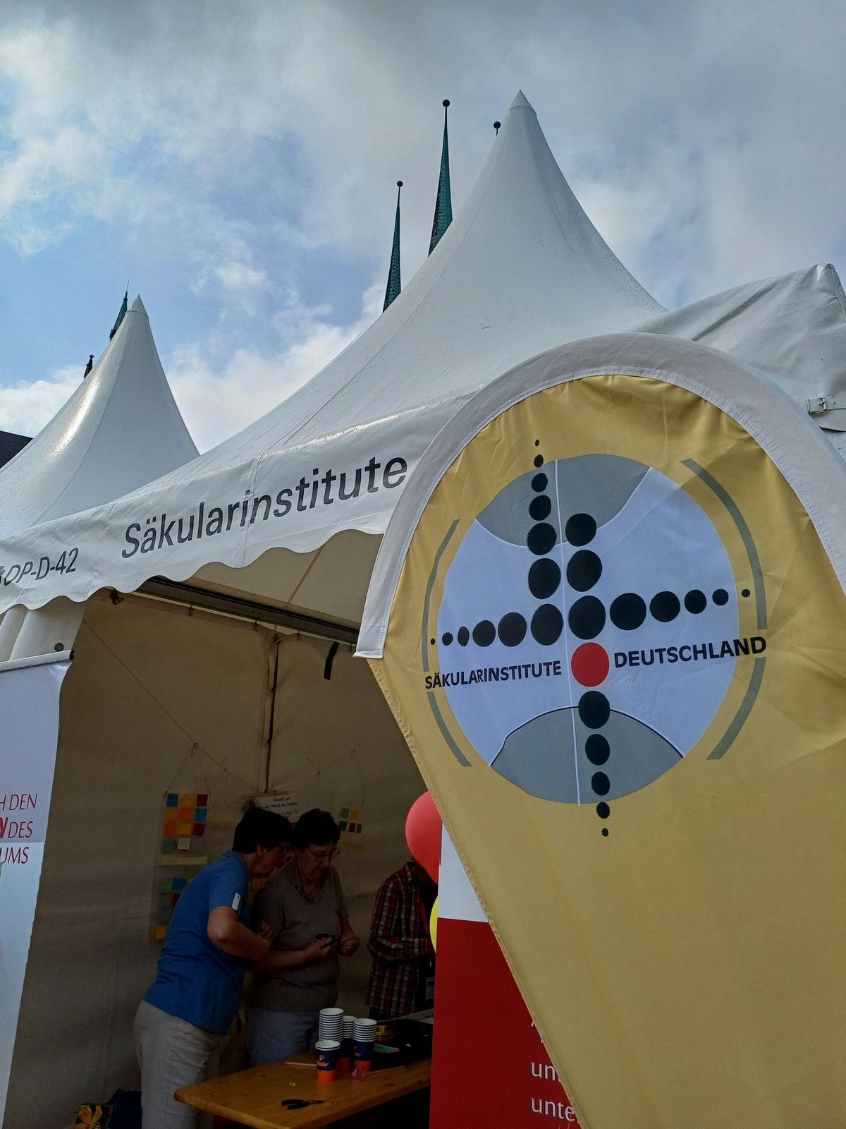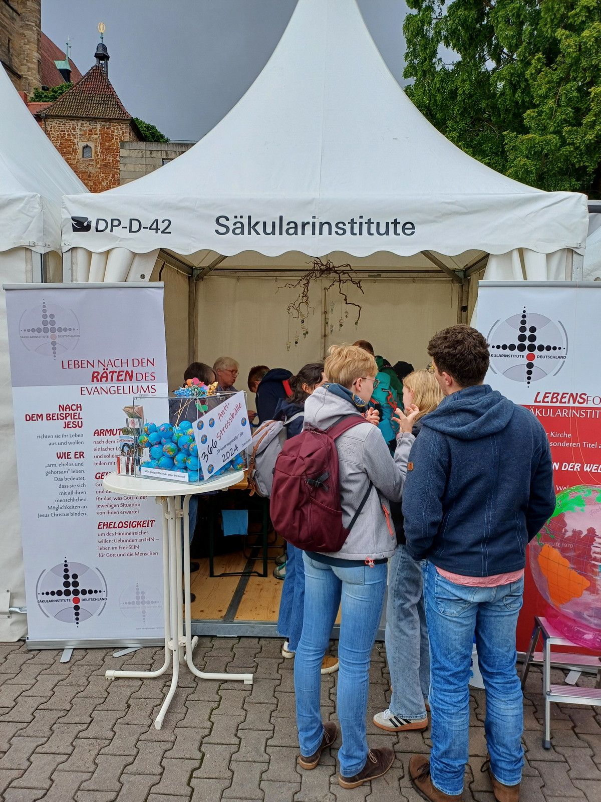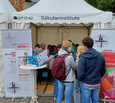 Nicht selten ‚stolperten‘ Menschen über den Begriff ‚Säkularinstitute‘, der hoch oben über dem Zelteingang geschrieben war. Aus ersten vorsichtigen Fragen, was sich denn hinter dieser Bezeichnung verbirgt, entwickelten sich oftmals intensive Gespräche, die für beide Seiten zu wertvollen Erfahrungen wurden.