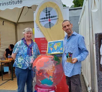Wer sich auf diese Weise bemühte, erhielt einen kleinen Knautschball in Gestalt eines Globus. 366 Bälle (für jeden Tag des Schaltjahres 2024) konnten wir verschenken und den Gedanken teilen: für jeden Tag dieses Jahres hält jemand die „Welt“ in Händen und bemüht sich im persönlichen Umfeld um Frieden, damit Zukunft für alle möglich werden kann.